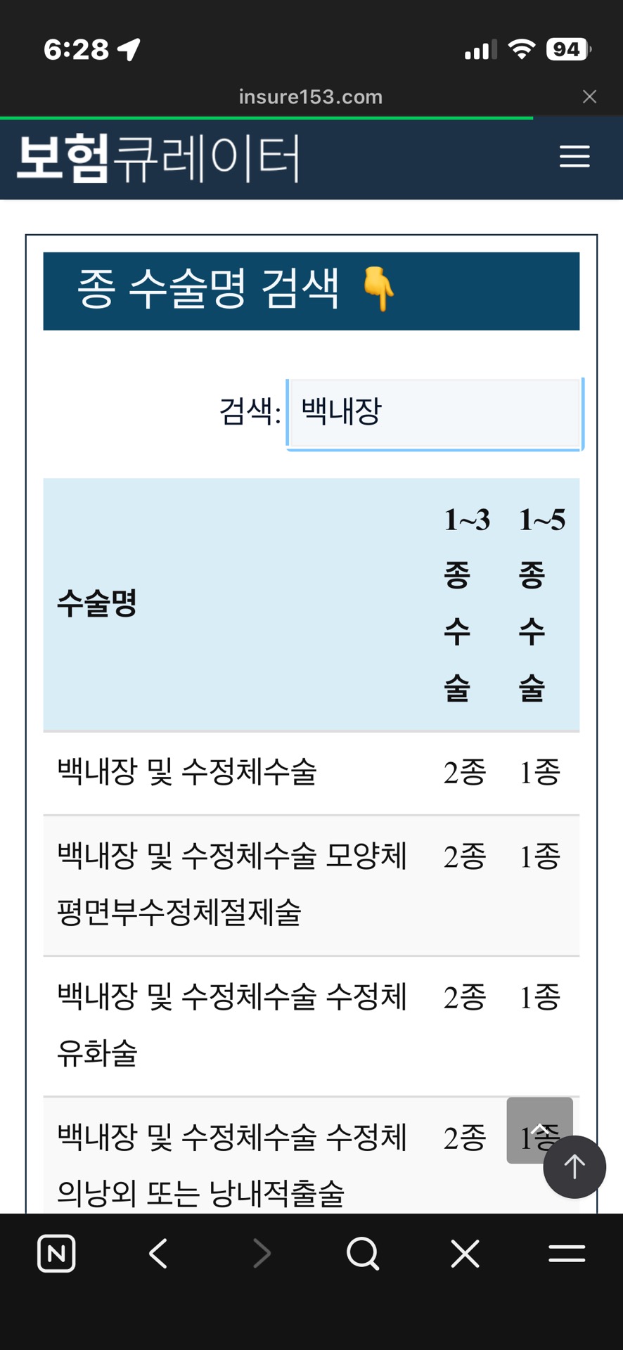 백내장 수술은 1~5종 수술비 중에 1종에 해당합니다.