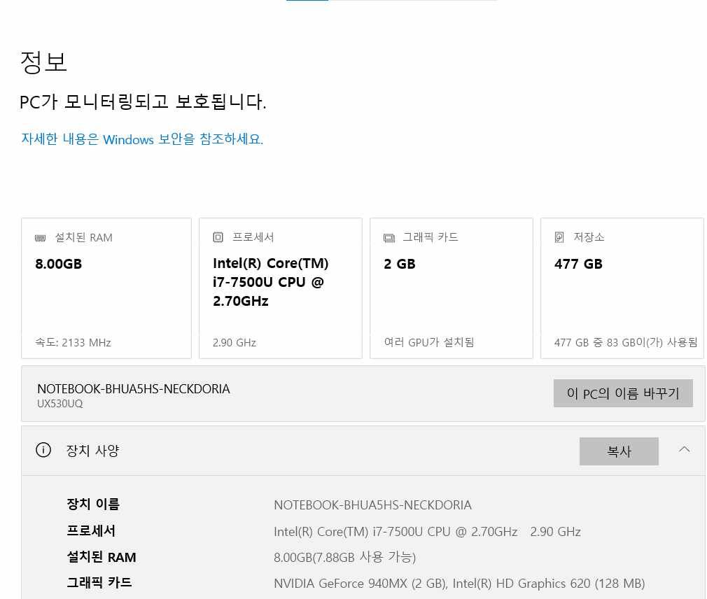 현재는 7세대 노트북 2017년 에 산 거 쓰고 있습니다.