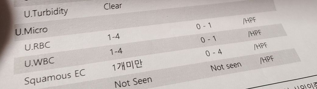 이 결과는 소변에서 적혈구, 백혈구, 상피세포 등의 미세한 성분들이 1-4 개 보인다는 의미입니다. 참고치 범위를 약간 벗어났지만, 임상적으로 큰 문제를 나타내지 않을 수도 있습니다.