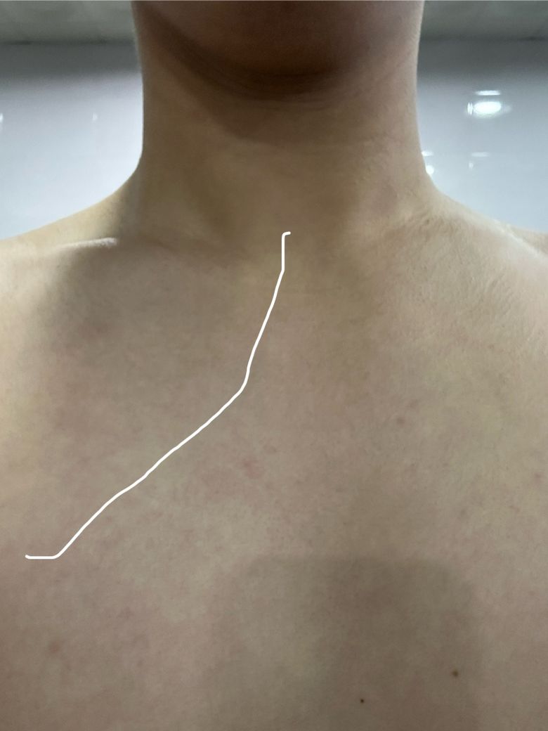 밥 먹고 나서 화장실을 잠깐 들럈는데 거울을 보니까 가슴부터 목까지 갑자기 핏줄이 보입니다 혹시 문제가 있는걸까요..? 사진으로 보면 잘 안보여서 선 그렸습니다!!