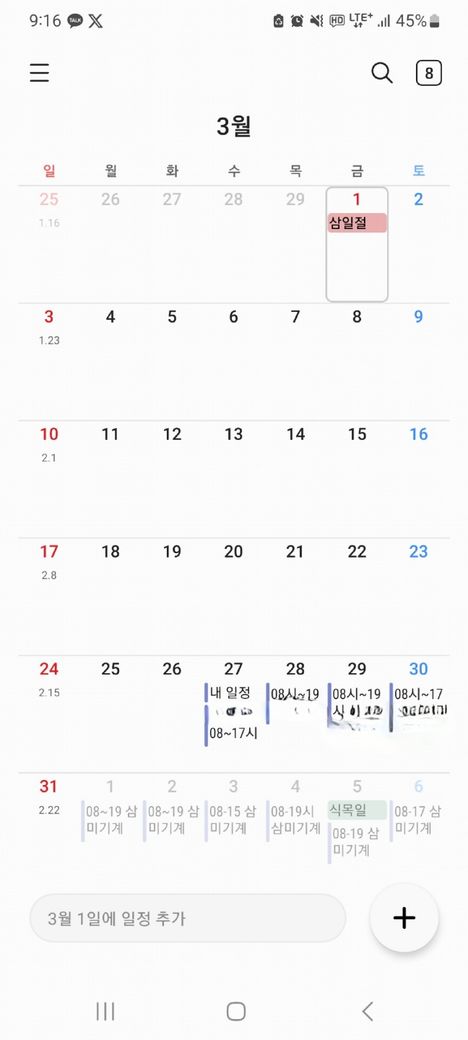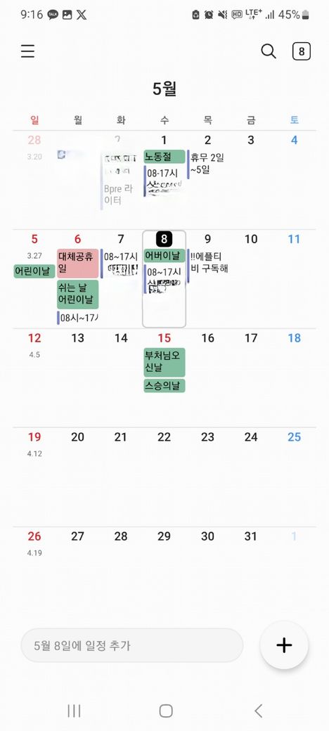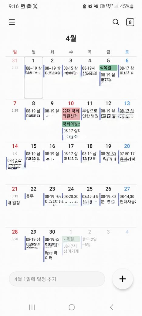 거의 08시~19시까지 근무이나 수요일은 17시까지 근무했습니다