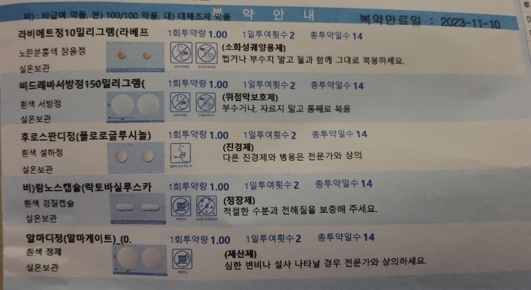 기존에 드시던 일반약이랑 병원에서 처방받은 약은 같이 먹어도 괜찮아요.