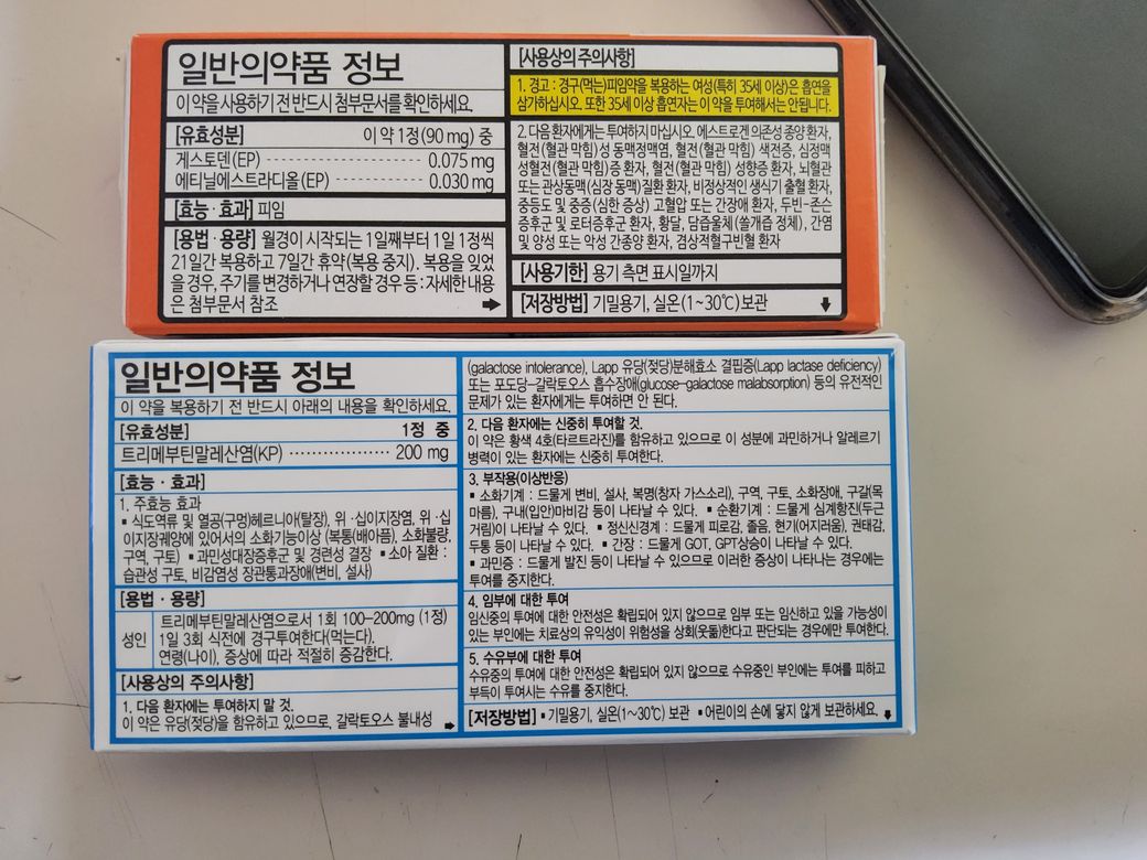 첫번째 사진은 피임약(마이보라 정)과 제이부틴 더블정 이고
