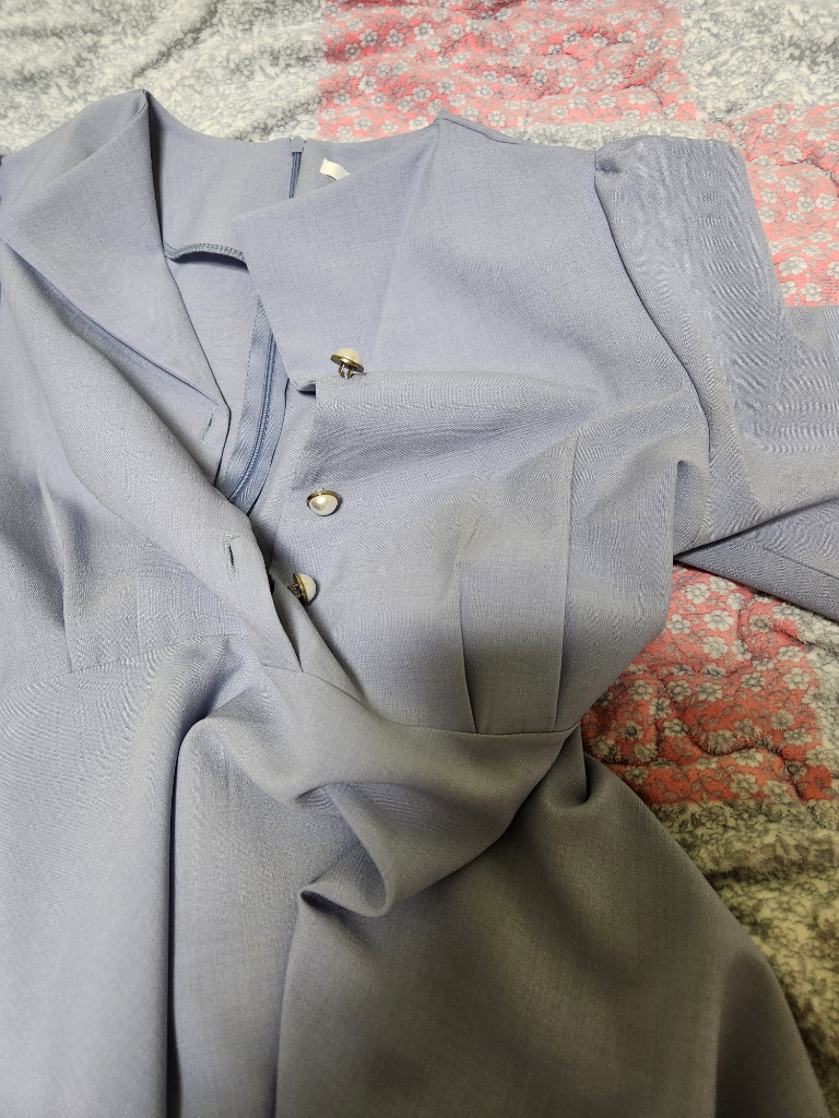 하늘색 원피스고 소재는 약간 면보다 까칠하고 한 폴리나 린넨 재질같아요