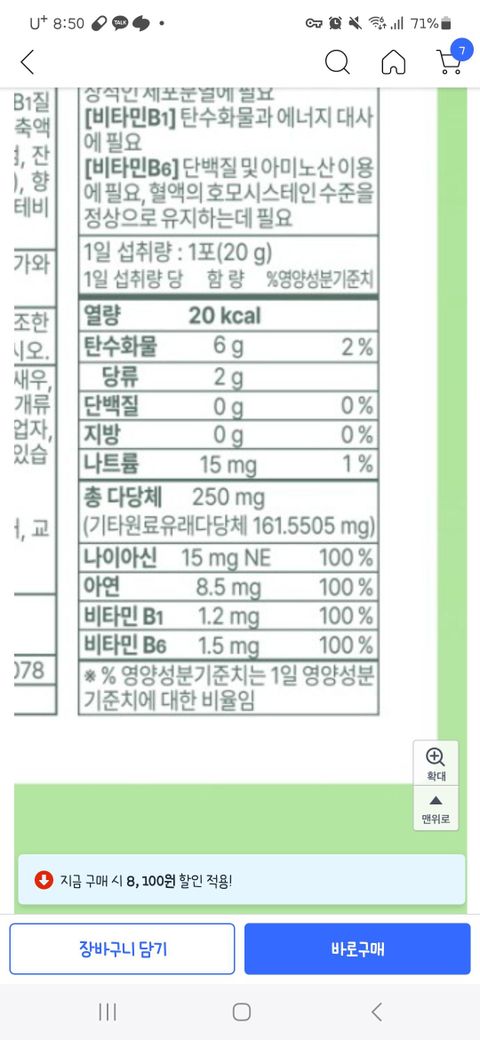 나이아신은 과량 복용을 해도 흡수되고 남은양은 소변으로 배출되기에 문제가 되지 않으나, 아연은 하루에 7미리 이상은 복용하지 않길 권장드리지 않습니다. 현재 함유된 아연은 8.5미리와 7미리로 15.5미리로 흡수율이 50프로정도입니다.