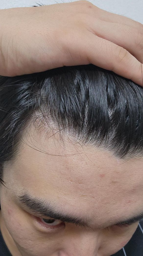 현재 m자 탈모인지 확인 받고 싶습니다. 나이는 22살 남성이고 사진 상으로 m자가 그려지는 거 같아서 살짝 두렵습니다. 전문가들이 봤을 때 어떤거 같나요?