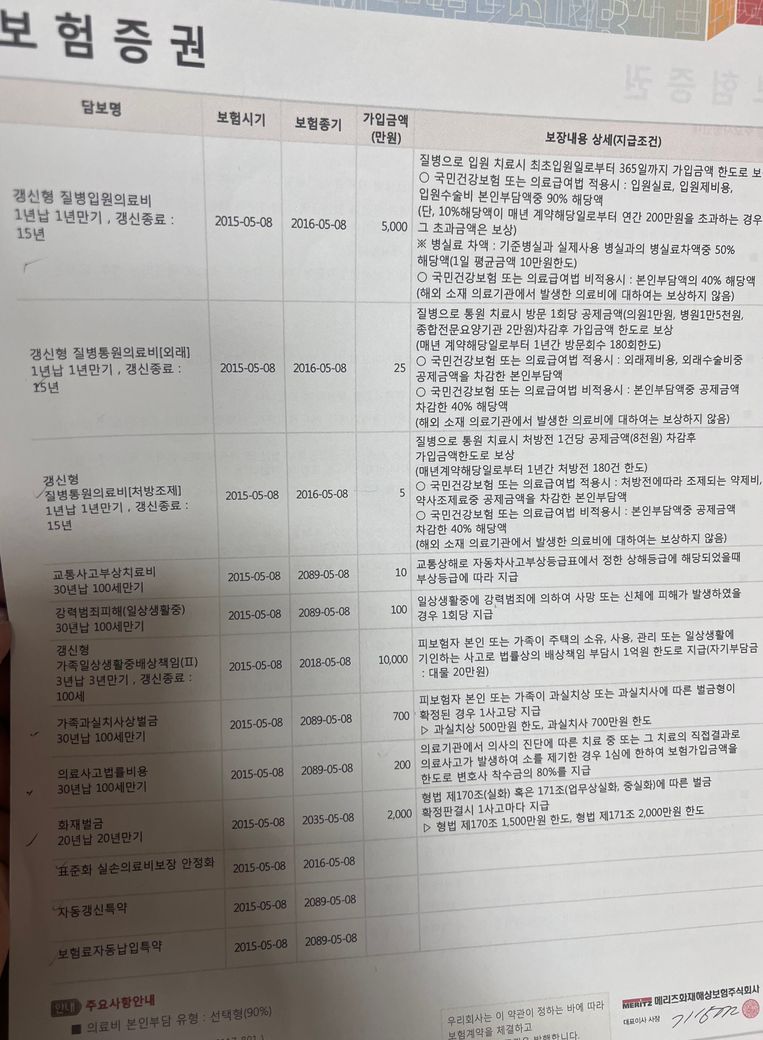 보험 가입일은 2015년 메리츠가입하였습니다