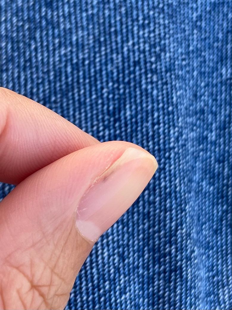 조갑하 선상출혈 (Splinter hemorrhage) 라고도 하며 마찰이나 외부 자극으로 손톱 아래에 작은 출혈이 생기는 것입니다.