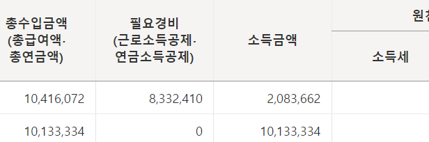 직장 두 군데 다녔는데 종합소득세 낼 때 필요 경비 안잡히는건 뭘까요