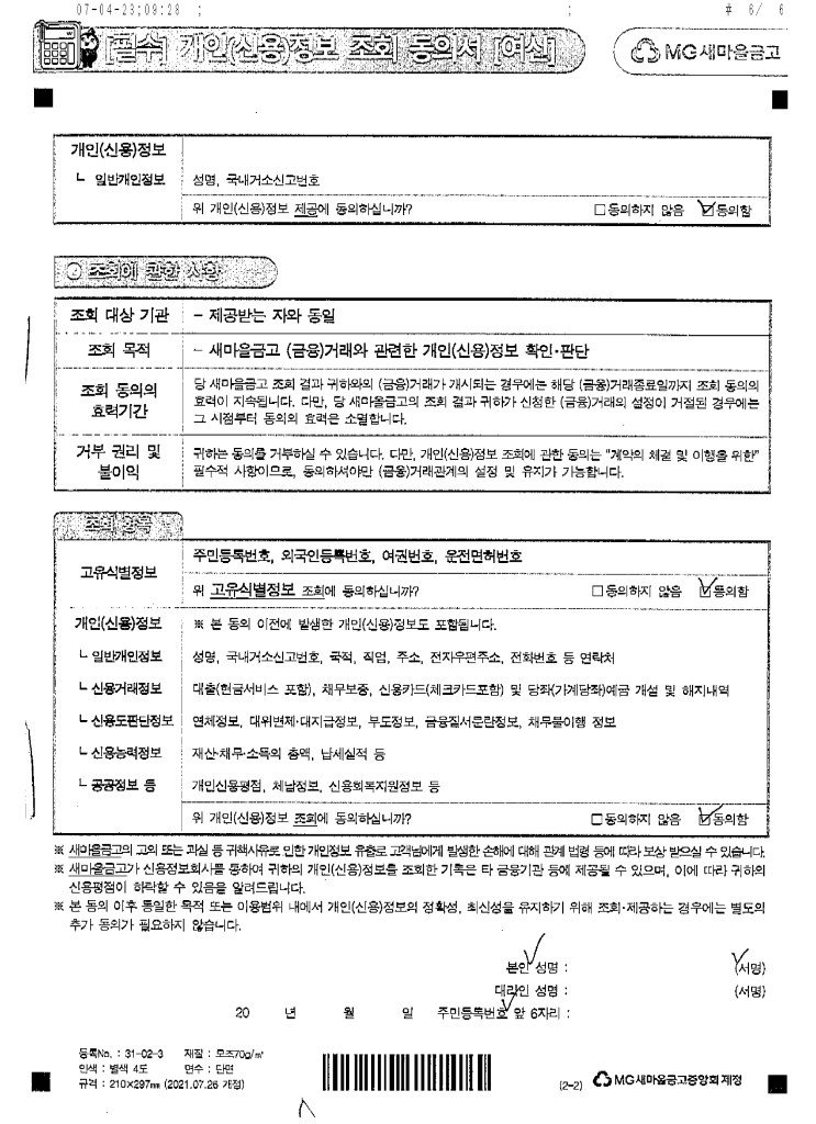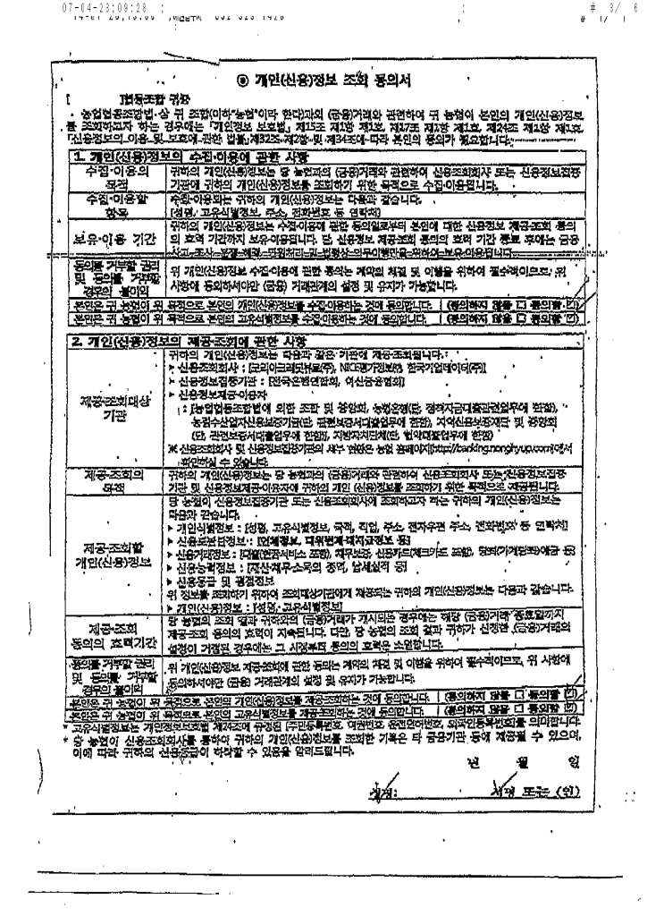 질문자님께서 올려주신 사진들은 대출과 관련된 신용정보조회동의서 양식이 맞으며, 해당 서류들을 싸인해주셔야지만 개인의 CB정보를 조회하고 대출심사를 진행할 수 있습니다.