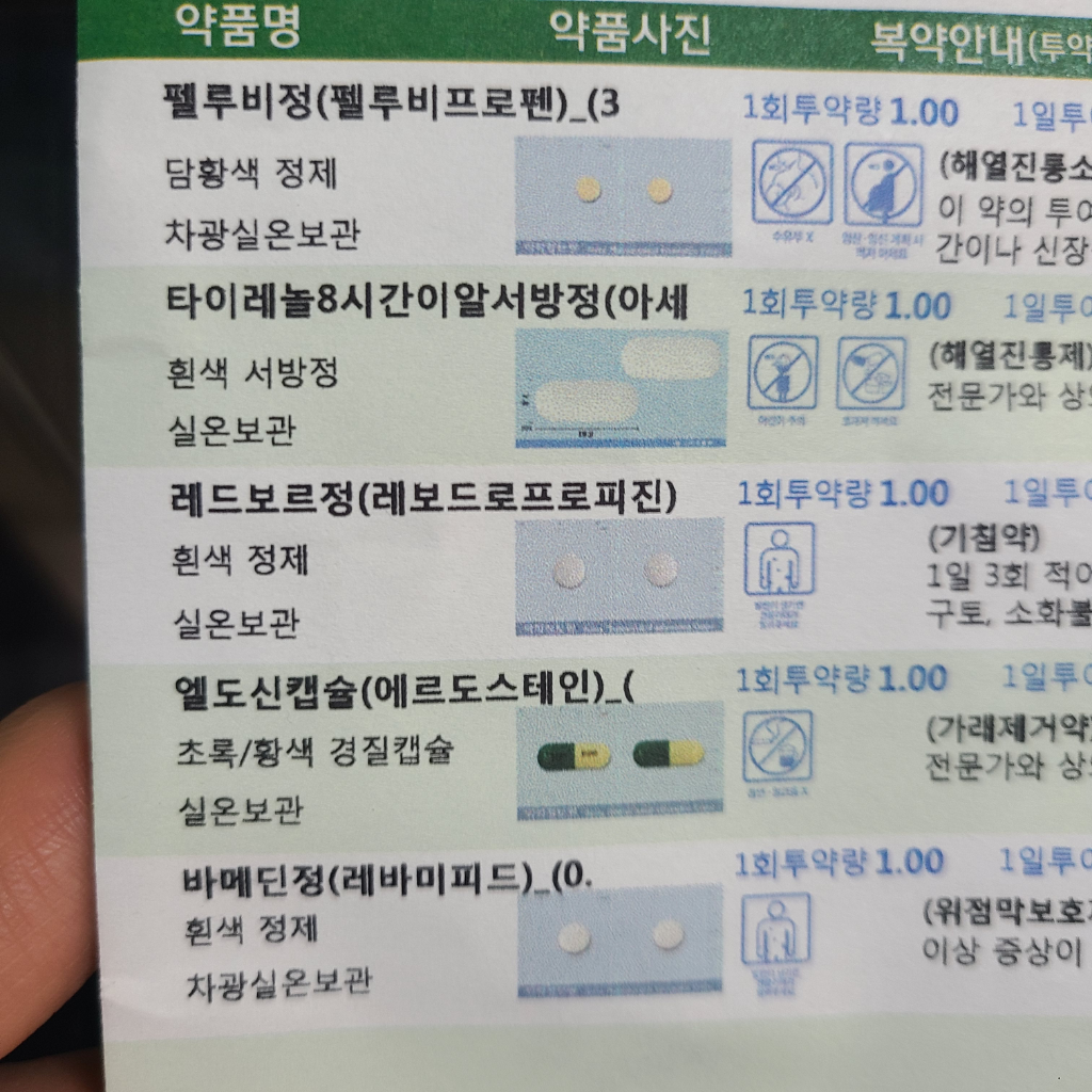 펠루비정, 타이레놀8시간이알서방정 2가지 진통제를 사용했기때문에 추가로 복용할 수 있는 진통제는 없습니다.