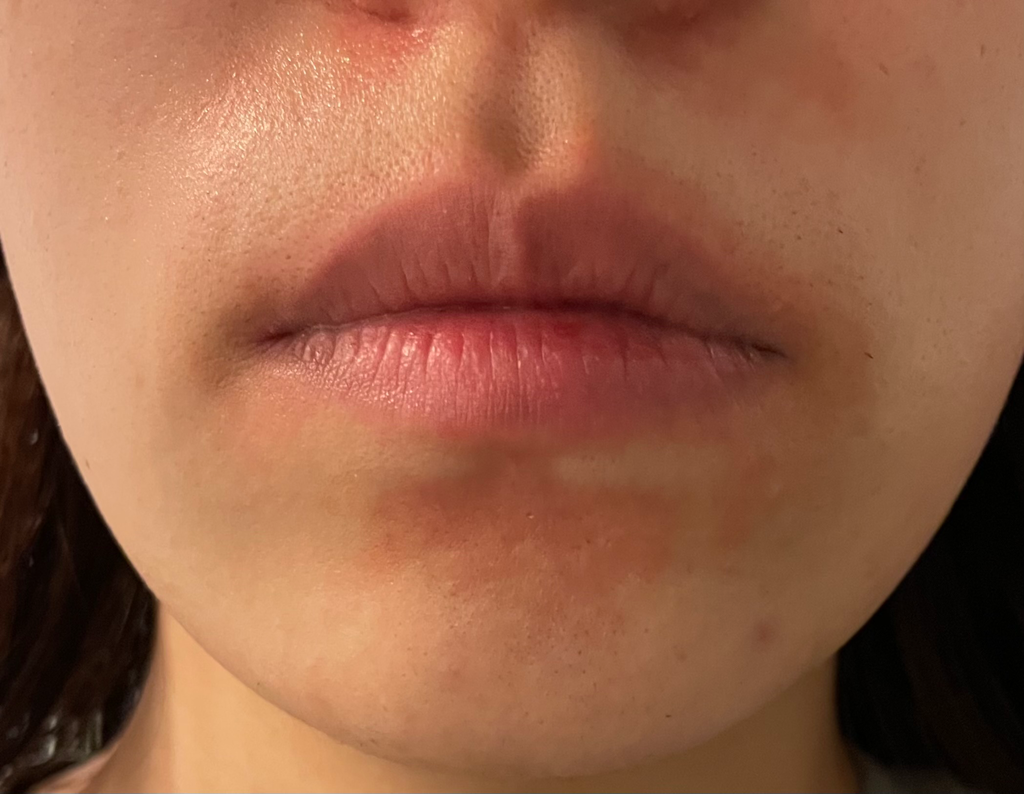 입술주위염, 접촉성 피부염과 같은 질환들을 의심해보아야 할 것이라 예상됩니다. 가까운 피부과에서 치료받아보시기를 권해드립니다.