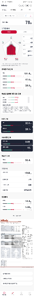 인바디를 화면이 작아서 정확하게 파악하기가 어렵네요.