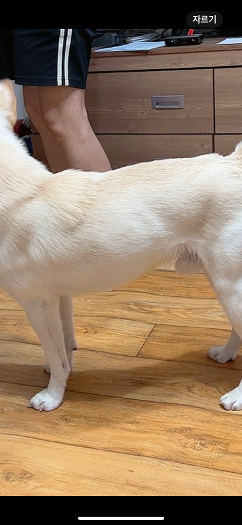 디스크등 해당 척추 부분에 통증을 유발할때 보이는 kyphosis 양상의 자세입니다. 동물병원에 데려가서 진료 받으시기 바랍니다.