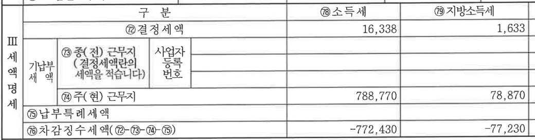 종전근무지는 본인이 현직장 이전 직장에서 원천징수된 소득세를 입력하는 것입니다.