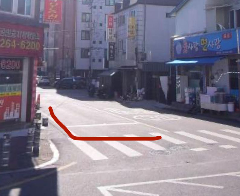 사진에 보면 사람이랑 차가 다 다니는 길 골목?을 걸어와서 횡단보도를 건너다가 일어난 사고입니다
