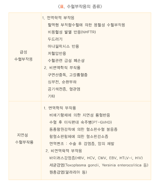 수혈시 나타날 수 있는 부작용을 첨부합니다.