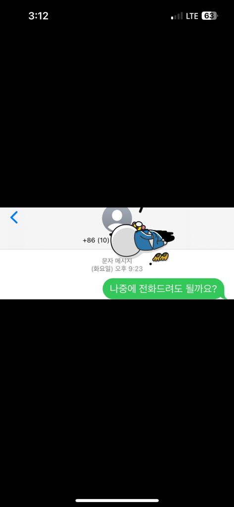 아이폰 전화 거절시 알림 메세지 국제번호 86(중국)으로 전송