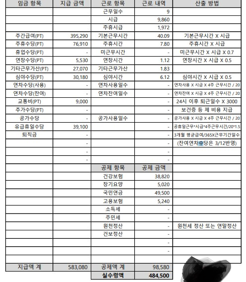 임금명세서 이게 맞나요?? 잘 모르겠습니다.