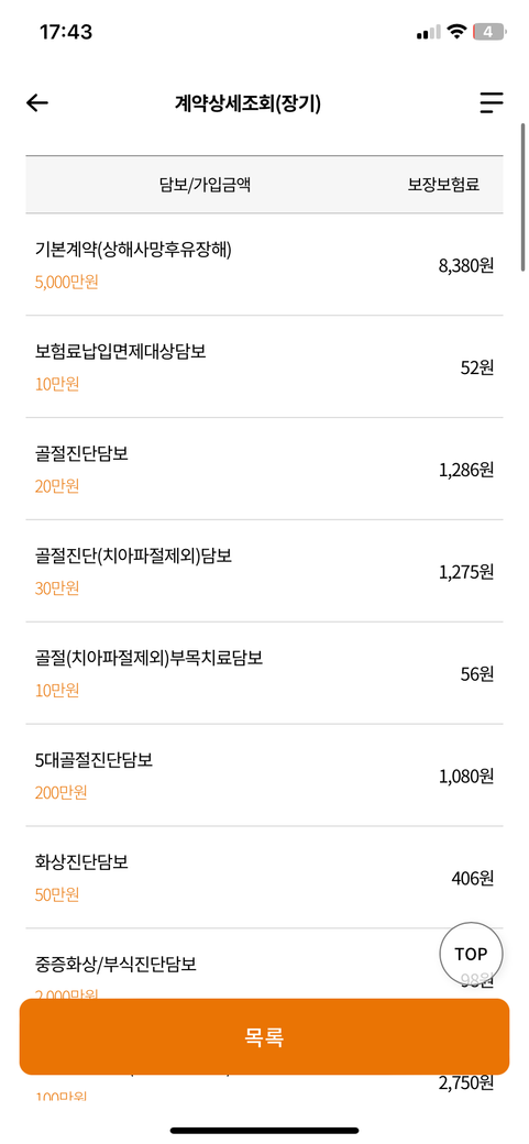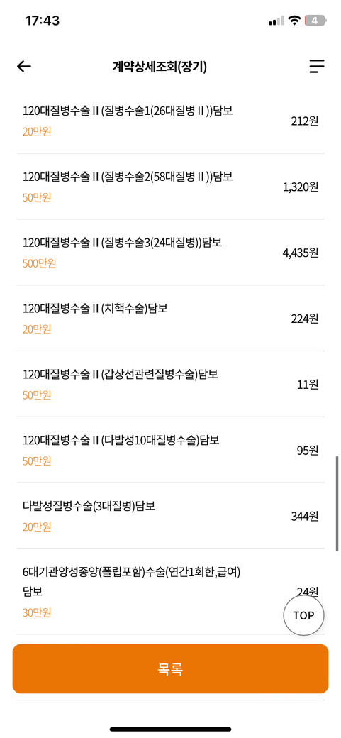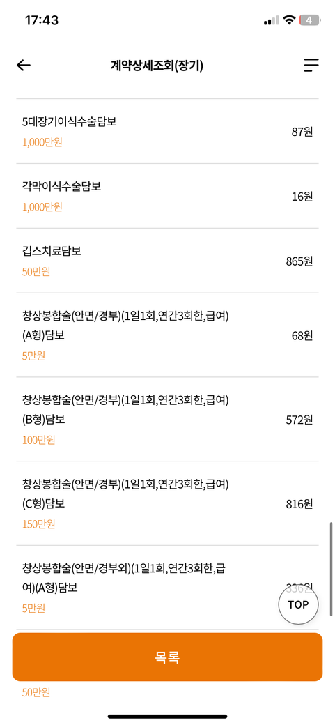 상해와 수술비로만 이루어져 있는 보험이네요..