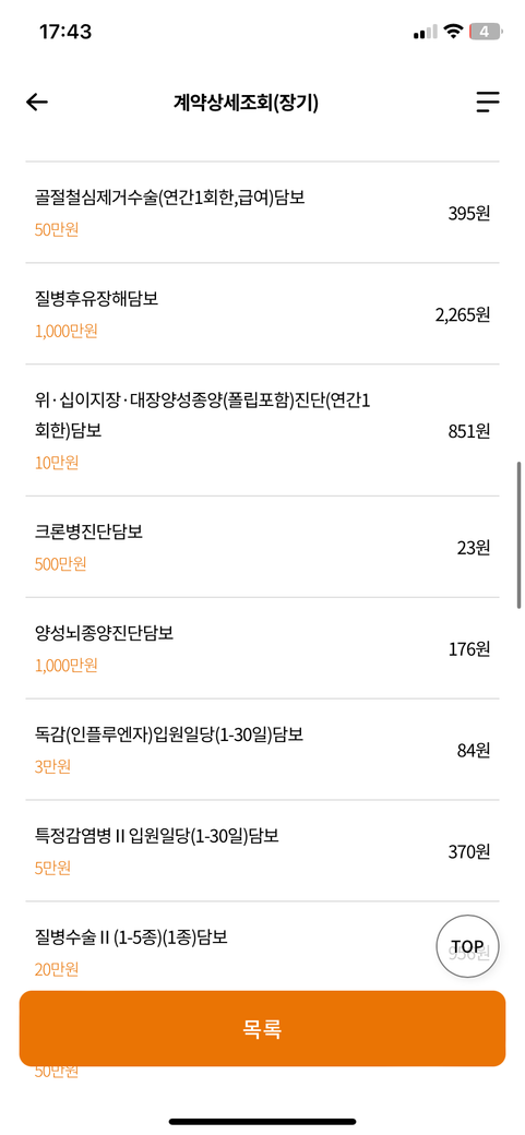 그리고 불필요하단 생각의 특약들은 실제 특약 비용이
