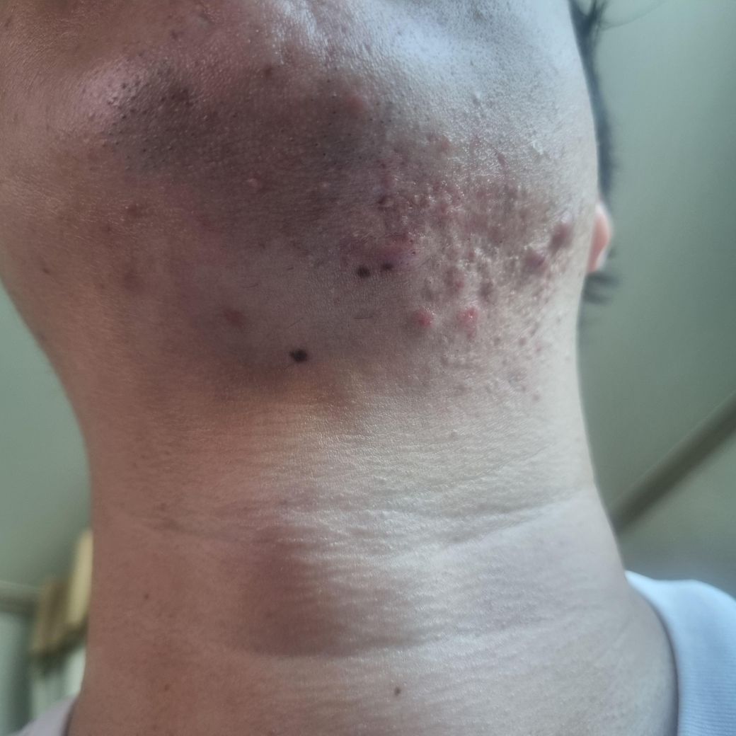 직접 육안으로 진료를 봐야 정확하겠지만 화농성 여드름, 결절성 여드름이 섞여 있는 상태로 보입니다. 치료에는 항생제(경구나 국소 항생제)가 사용될 수 있으며, 염증을 줄이기 위해 스테로이드 주사나 레티노이드 계열의 약물이 필요할 수 있습니다. 또한, 화장품이나 세안제는 자극을 최소화하는 제품을 사용하고, 여드름 전용 크림이나 항균제를 꾸준히 사용하는 것이 좋습니다. 이 외에도 피지 조절과 청결 유지가 중요하며, 심한 경우에는 피부과의 치료를 받는 것이 필요합니다.