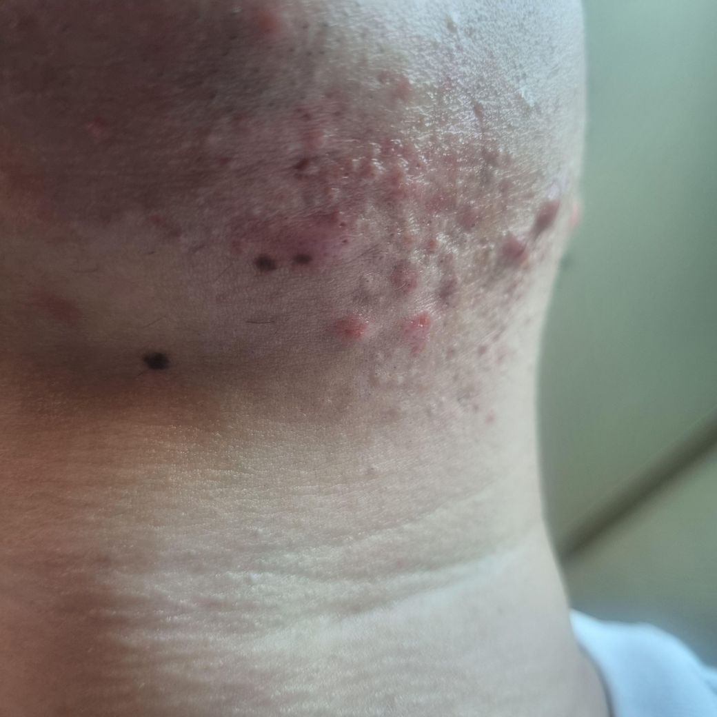 턱밑에 사진과같이 이런 트러블이 생겼는데 어떤 증상이며 어떤 치료를 받아야하나요? 혹시 연고로 해결되면 어떤연고를 써야하는지좀 알려주세요.