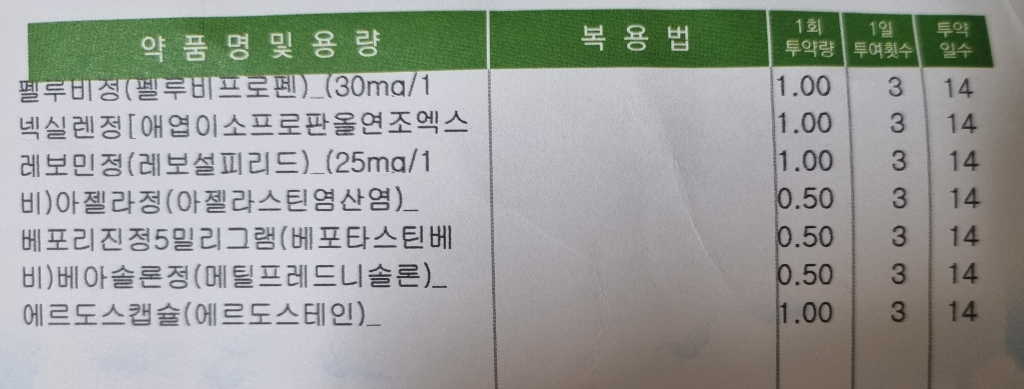 처방약들은 위장장애를 일으킬 수 있기에 식후에 복용하시고