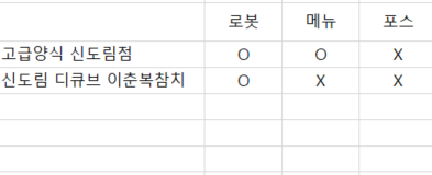 위 첫 번째 사진을 보시면 A의 1, 8, 15, 22 이런 식으로 7칸씩 차이 나고 식당명이 적혀있습니다. 아래 A의 [5,6,7] [12,13,14] 이것도 3개가 한 세트라고 가정하고 7칸씩 차이가 있고 빨간색이면 사용 중, 회색이면 사용 안 함입니다.이 양식으로 되어있는데 2번째 사진 보시면 맨 왼쪽이 식당명 오른쪽이 로봇 메뉴 포스인데 빨간색이면 O가 나오고, 회색이면 X가 나오게 할 수 있는 함수가 있을까요??