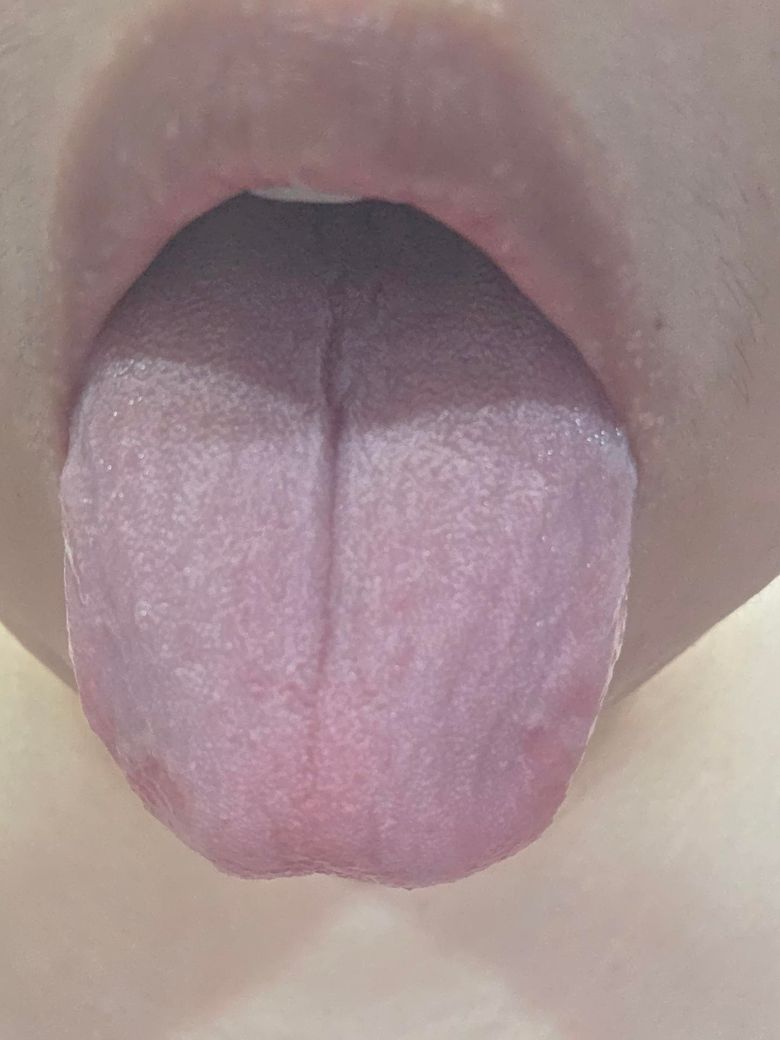 사진에 보이는 가운데 선은 정상적인 혀의 구조 입니다. 혀가 건조해서 더 뚜렷하게 보이는거 같습니다.