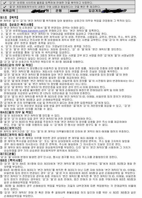 당시 계정을 구매하면서 전자계약서를 작성하였고, 사진과 같습니다.