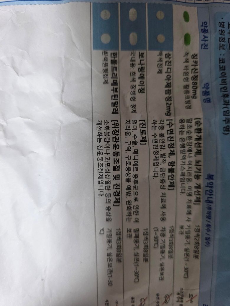 이명에 대한 약만 사진으로 올라오고, 구강염증에 대한 약은 올라오지 않은 것 같습니다