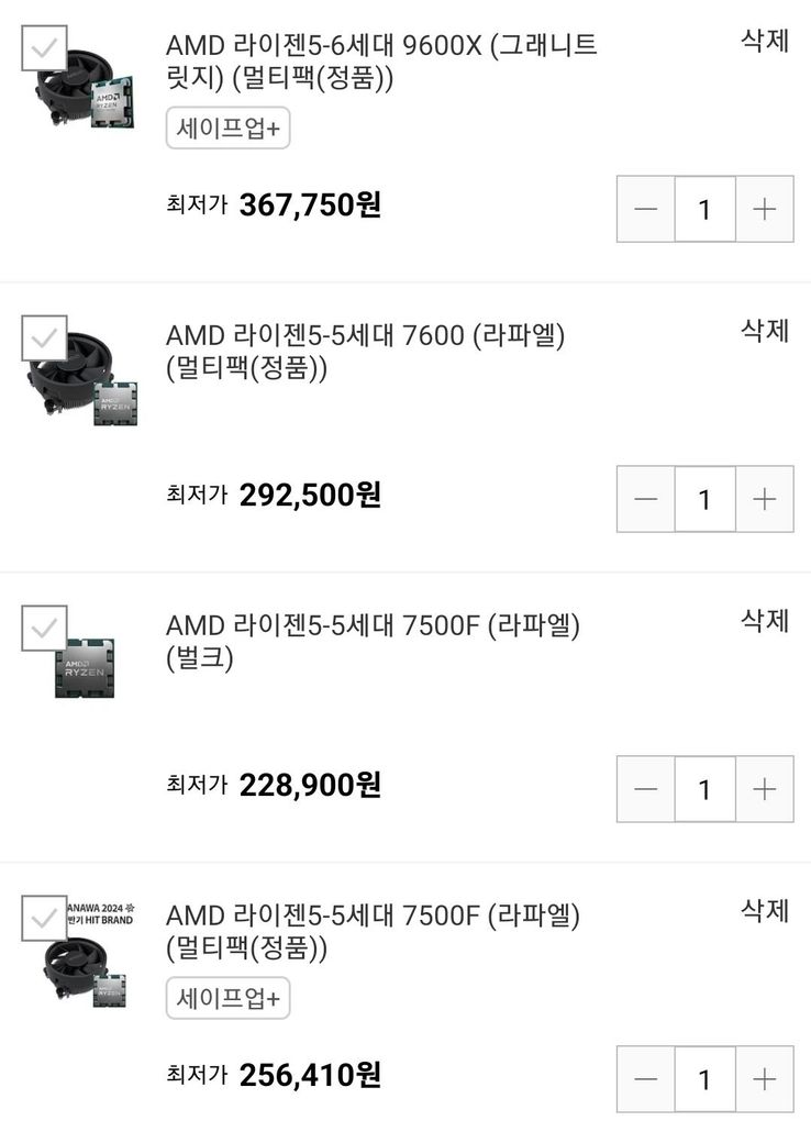 CPU 요즘 인텔이 별로라는 얘길 들어서 처음으로 AMD CPU 보고 있는데 뭘 사야할지 고민되네요 처음엔 9600x사려고 했는데 너무 비싸서...