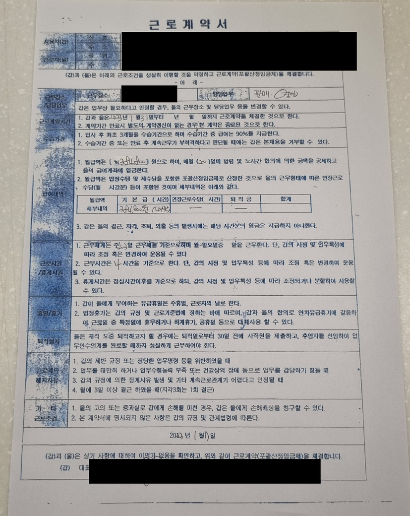 2. 해당 근로 계약서 내용에 문제는 없는지, 유효한 것인지 궁금합니다.