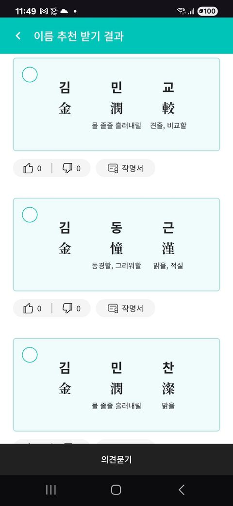 세 이름 중에 가장 좋은 이름 1순위·2순위·3순위로 평가해 주시면 감사하겠습니다.