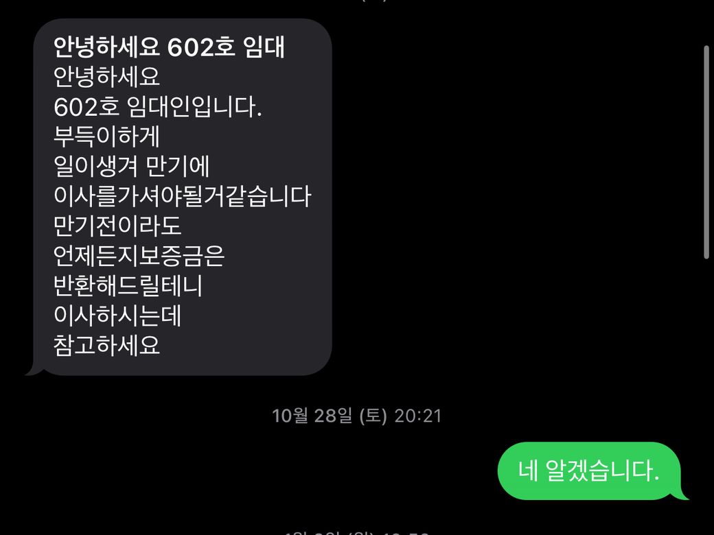 집주인은(임대인) 23년 10월 28일에 보증금은 언제든 줄 수 있으니이번 만기를 끝으로 나가달라고 하였습니다.