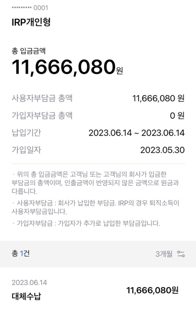 퇴직금을 개인형 퇴직연금(IRP)에 입금해야 합니다.