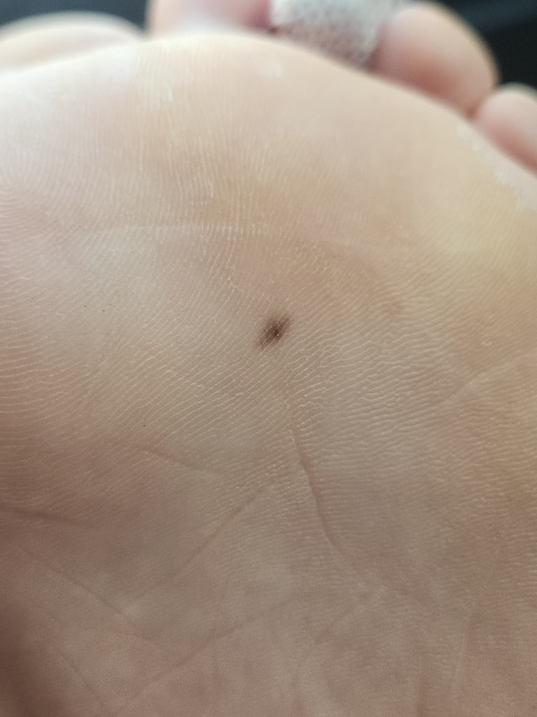 흑색 색소 침착으로 인한 흑색점은 가능성이 생각됩니다만 걱정되신다면 피부과를 방문하여 조직검사를 받아보시기 바랍니다.