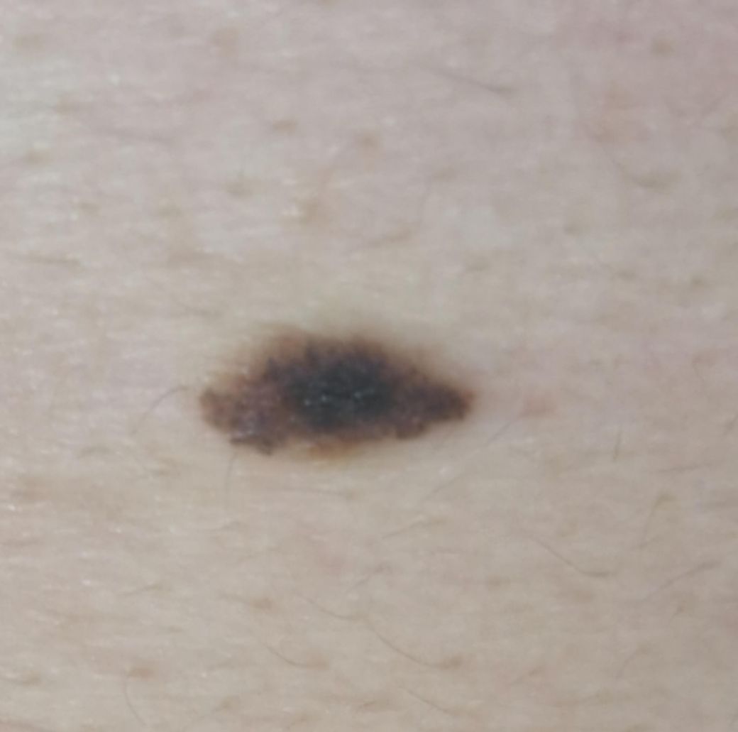 단순한 점과 흑색종은 육안만으로 구분이 어려우며, 사진이나 설명만으로는 확실한 판단이 불가능합니다.