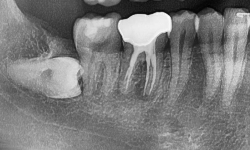 다만, 크라운 부위 하방 충치는 의심됩니다.