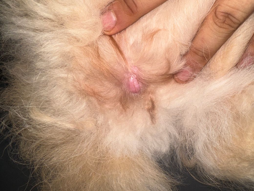어느날 강아지 몸을 만져보니 사진과 같은 엄지손톱정도 되는 혹이 만져지네요... 동물병원 가려면 주말까지 기다려야하는데 아무래도 걱정되서 미리 여쭤봅니다 ㅠㅠ 심각한걸까요.. 부위는 꼬리 오른쪽 부분입니다