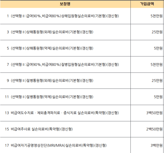 실손보장에 경우 보험사에서 판매하는 내용이 동일해 비교할 부분은 사실 없습니다.