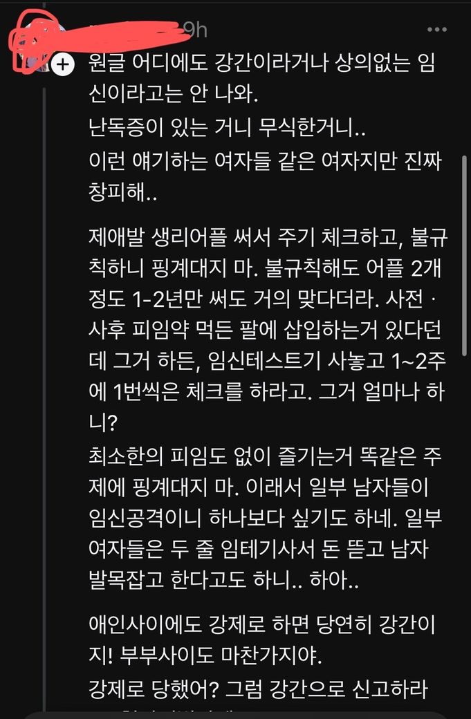 3. 최소한의 피임도 없이 즐기는거 똑같은 주제에 핑계대지 마 -> 허위 사실 유포 + 모욕