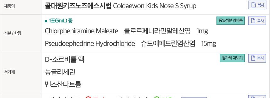 다만 코프시럽과 노즈시럽 둘다 교감신경 흥분 효과가 있는 약이 포함되어있어 병용시 두근거림을 일으킬 수 있으니 아이가 불편감을 호소한다면 병용을 중단해주시면 되겠습니다.