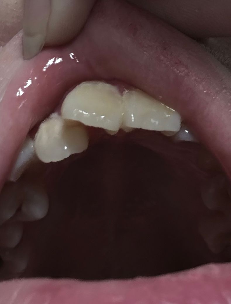 우측 앞니랑 바로 옆 치아가 정말 보기 안좋게 덧나있어요