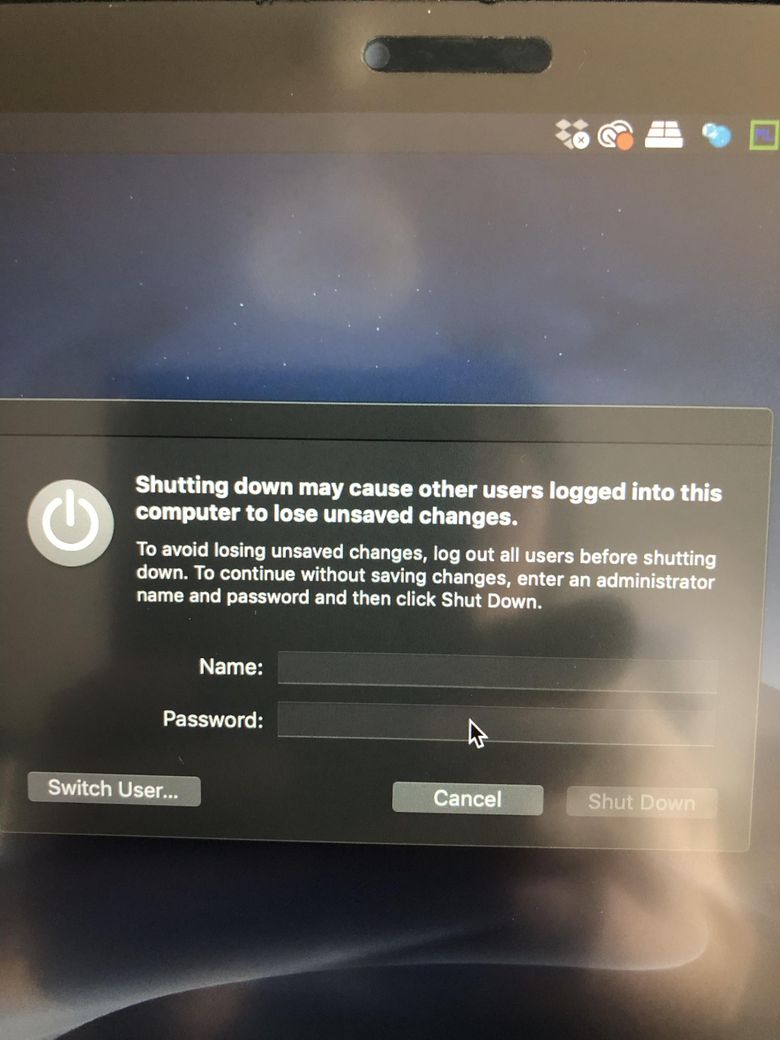 변경 사항을 잃어버리지 않으려면 맥북 안에 있는 모든 사용자를 로그아웃 하라고 합니다.