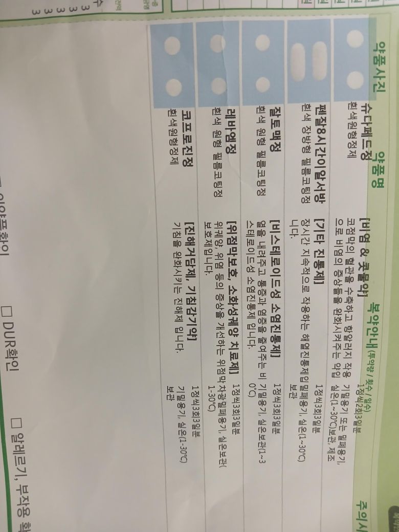 오늘 아침때쯤 먹은 약은 위에 사진이에요