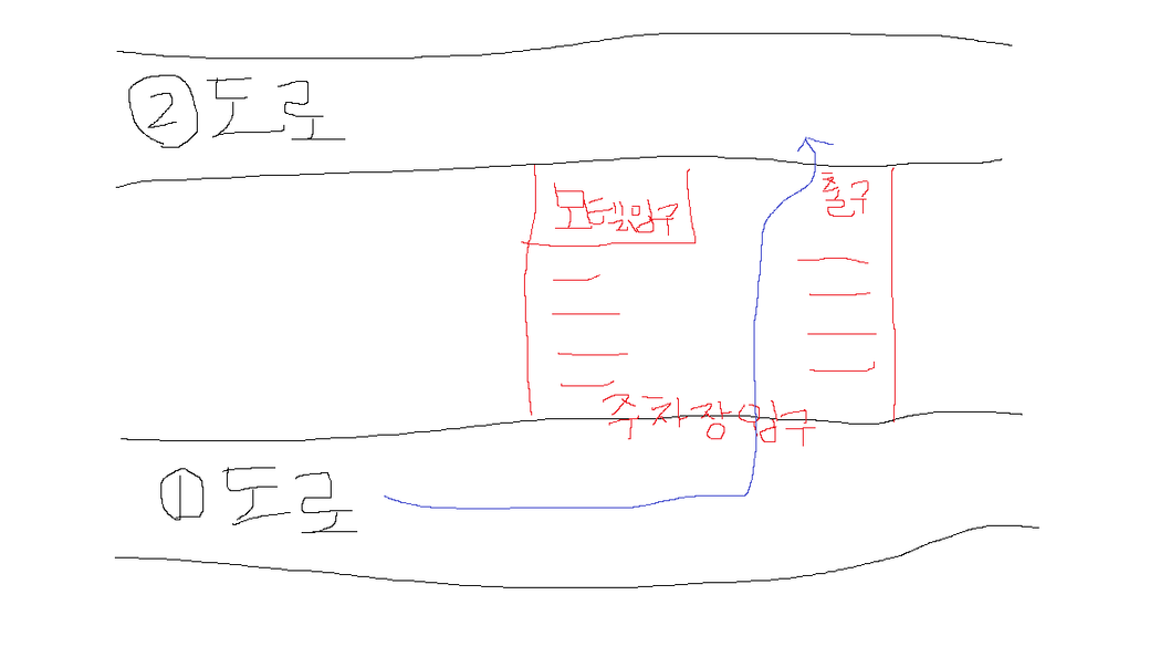 도로1에서 모텔 주차장을 통해 도로2로 도보로 이동하고 있었습니다.