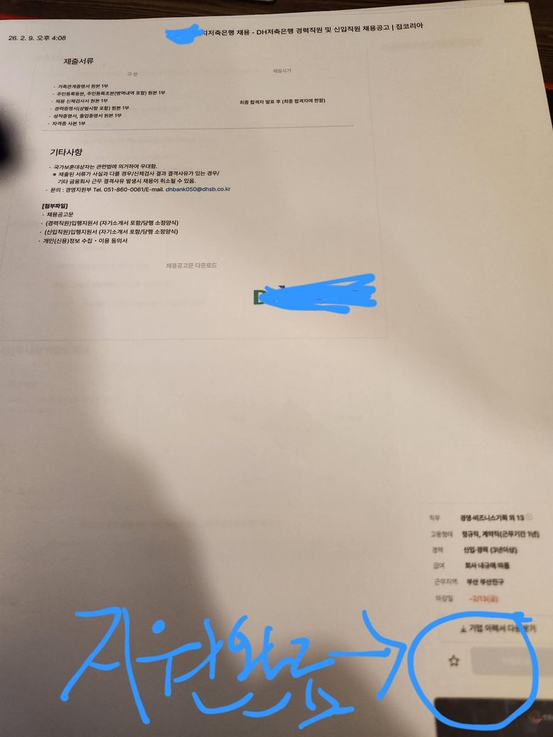 채용 공고문하고 이력서 지원하신 내역을 프린트를 뽑았는데요