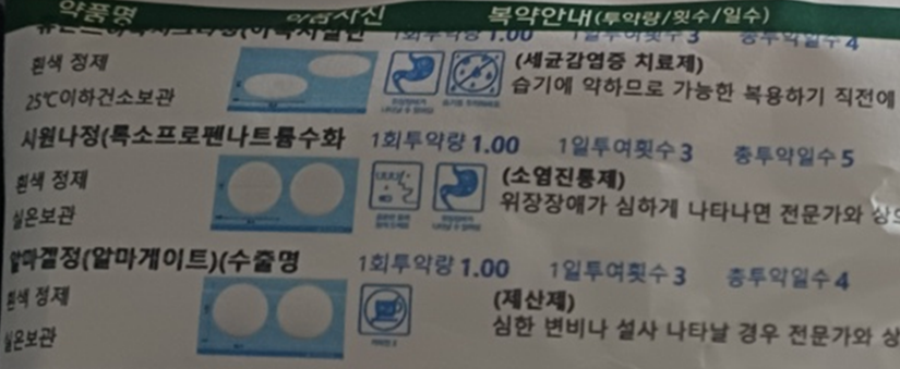 사랑니 발치 후 사진에 나와있는 약을 처방 받아 복용 중인데요.
